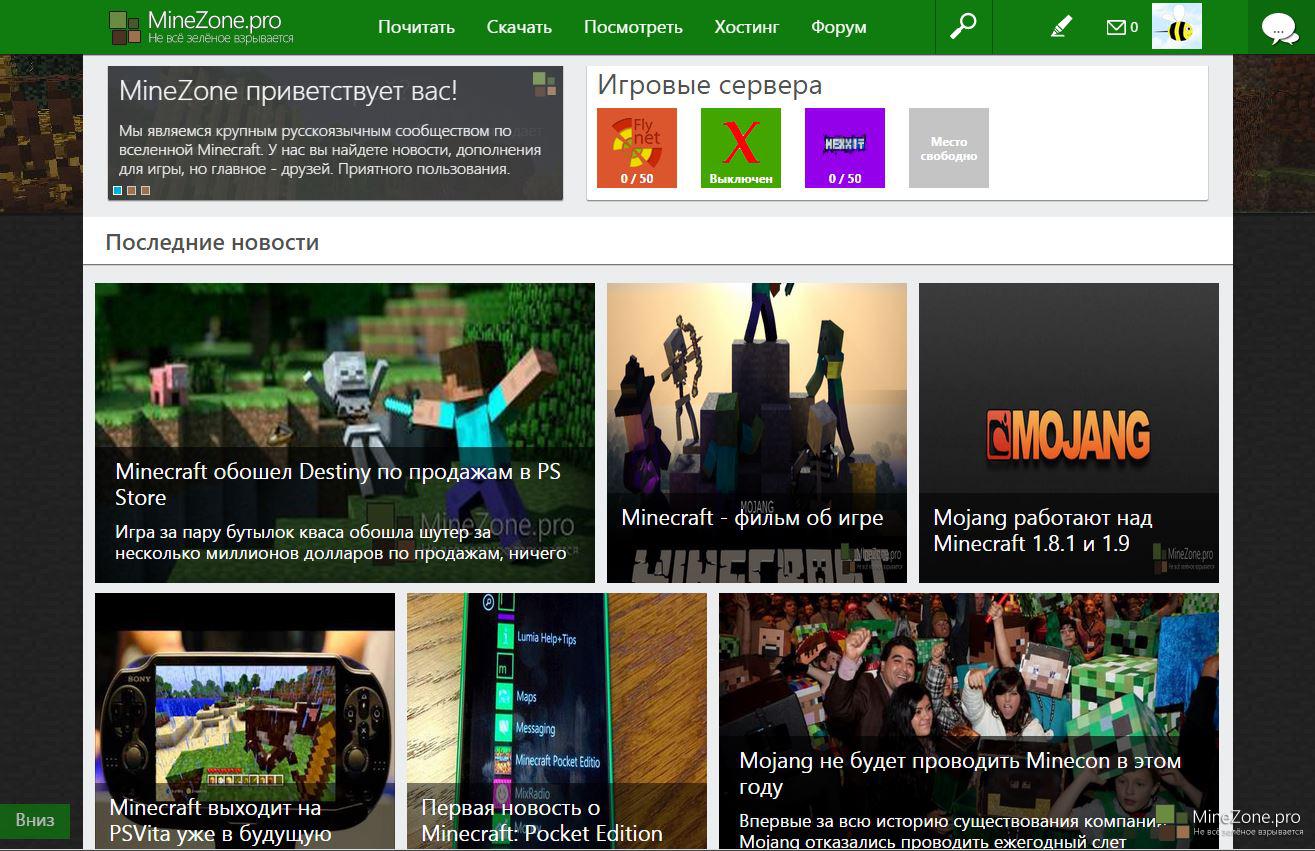 - Добавлена новая категория "Короткие новости". В нее будут добавляться самые последние новости из Minecraft и около мира. Теперь на главной выводятся последние шесть из них, и именно они будут всегда дублироваться в нашу группу во вконтакте.