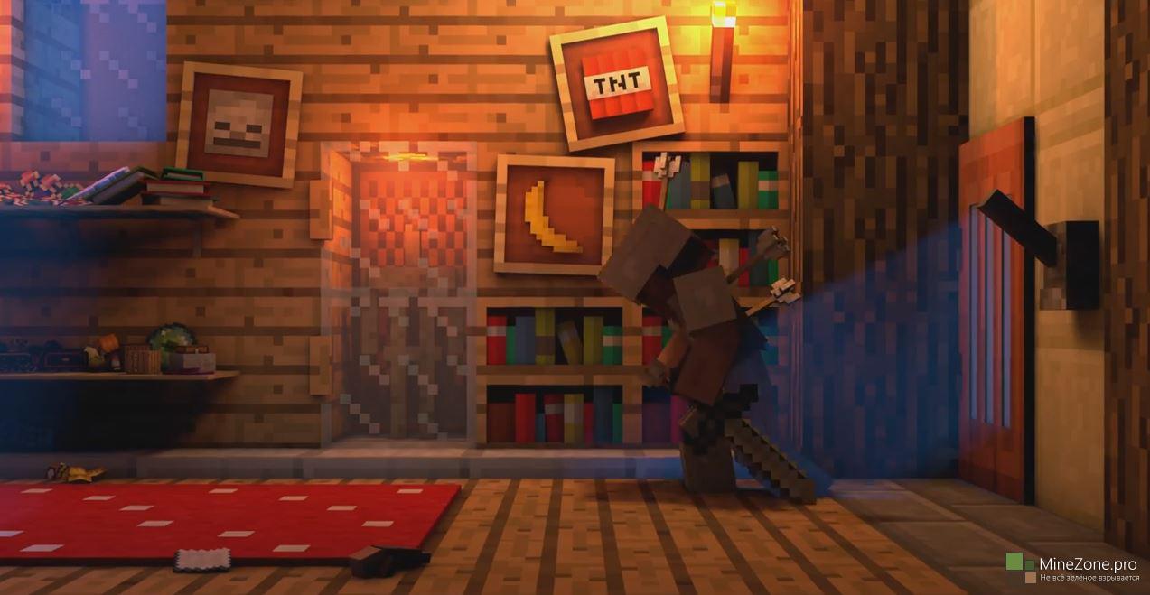 После длинной ночи сбора ресурсов Стив приходит в свой, как он думает, пустой дом..